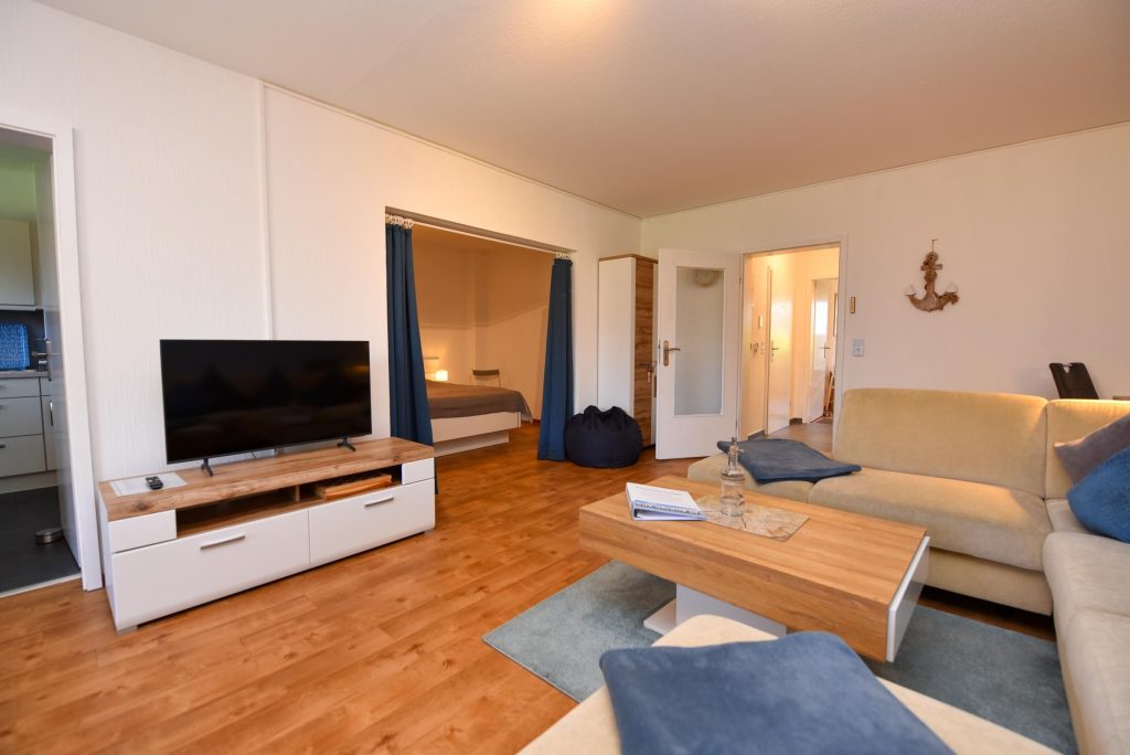 2 1/2 -Zimmer-Ferienwohnung im EG des Hauses LUV. Diese großzügige und Allergiker freundliche Ferienwohnung besteht aus einem Wohn-/Essraum und 2 Schlafräumen sowie einer separaten und voll ausgestatteten Küche (mit Backofen-Tischgerät). In dem Wohn-/Essraum befindet sich eine große und gemütliche Couchgarnitur und ein Esstisch mit 6 Stühlen außerdem ein Schlafraum, welcher zum Wohnbereich hin off...Weiterlesen