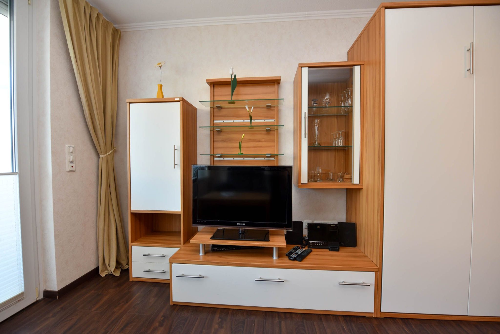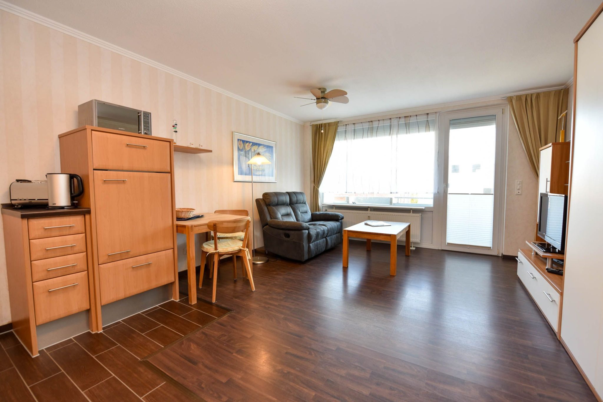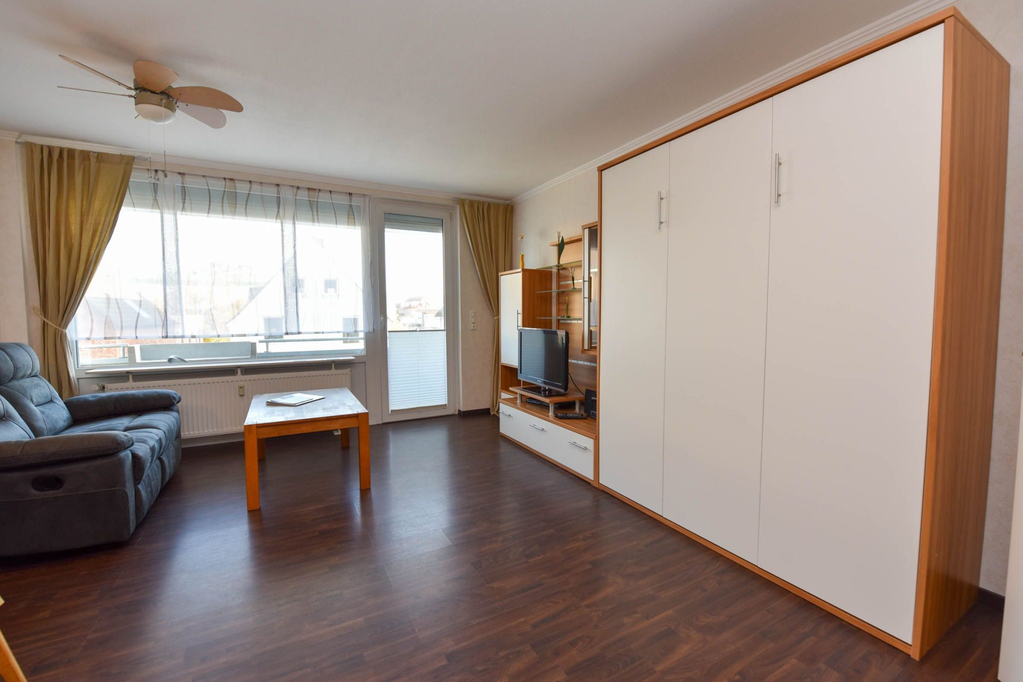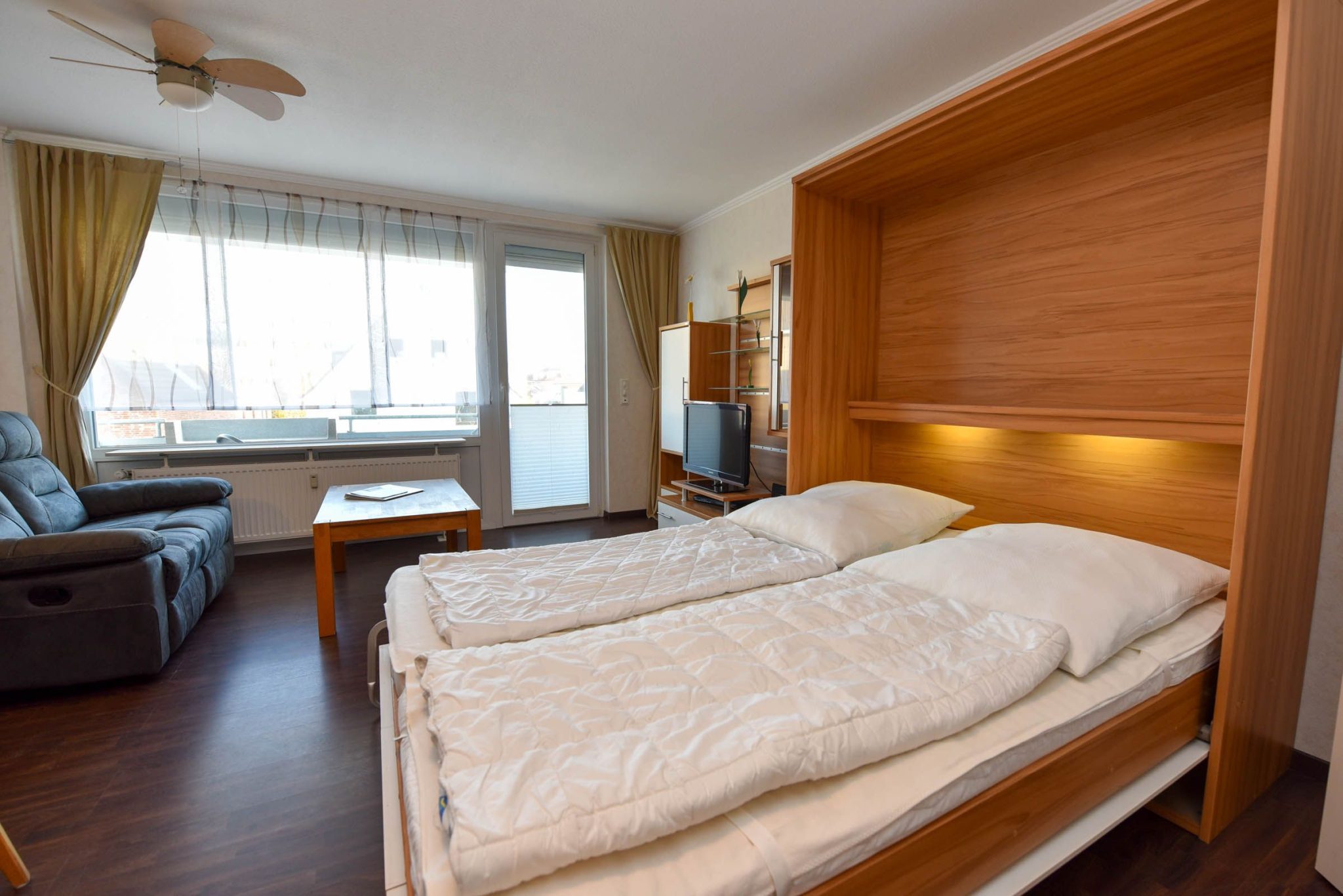 Der kombinierte Wohn- und Schlafbereich ist mit einem komfortablen Schrankklappbett ausgestattet ...Weiterlesen