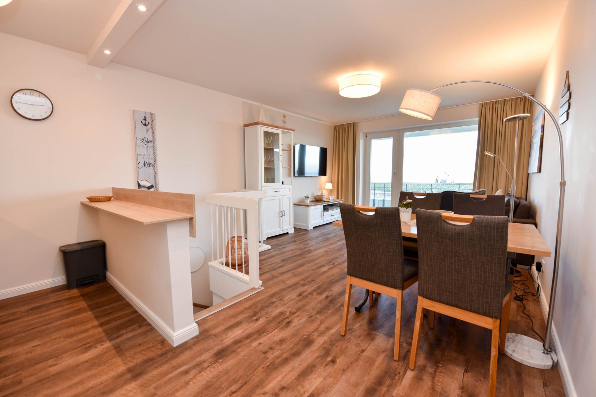 Die frisch renovierte Ferienwohnung Haus Nautilus, Wohnung 07 in Cuxhaven-Duhnen bietet direkten Blick auf das Wattenmeer. Mit Schlafzimmer, Doppelbett, Schlafcouch im Wohnbereich und moderner Ausstattung ist sie ideal für bis zu vier Personen. WLAN ist vorhanden, Strand und Promenade liegen in unmittelbarer Nähe.